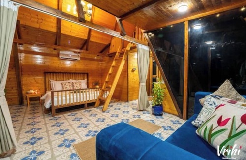 Our serene A-frame villa greets you with the shade of a magnificent mango tree at the entrance. Inside, unwind in the AC bedroom and wake up to the soothing sounds of birds and peacocks. Relax in the hammock from the loft area, offering panoramic views of the lush farmland. Enjoy daily housekeeping, high-speed WiFi, 24X7 power backup, in-room spa treatments. Just 800 meters from the Mandrem beach. Savor allergen-friendly, nutritious meals and indulge in a boutique experience surrounded by nature.